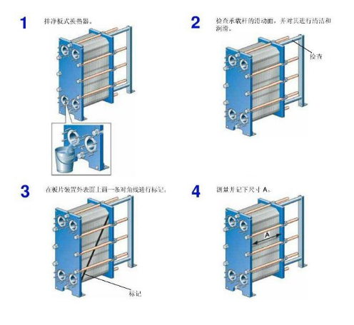 板式换热器压降过大的处理方法nger:清除板式换热器通道内的污垢、废渣或结垢。对于每个新运行的住户,根据实际情况每周清洁一次或根据使用情况设定固定间隔;二次循环水最好是软化水处理后的软水。一般,水中悬浮物质量不大于5mgL,杂质直径不大于3mm,pH值大于或等于7;水温不大于95℃时,Ca、Mg浓度不大于2mmolL;水温大于n 95℃,Ca、Mg浓度不大于0.3mmoll,溶解氧质量浓度不大于0.1mgl;集中供热系统可采用一次补水至二次补水的方式